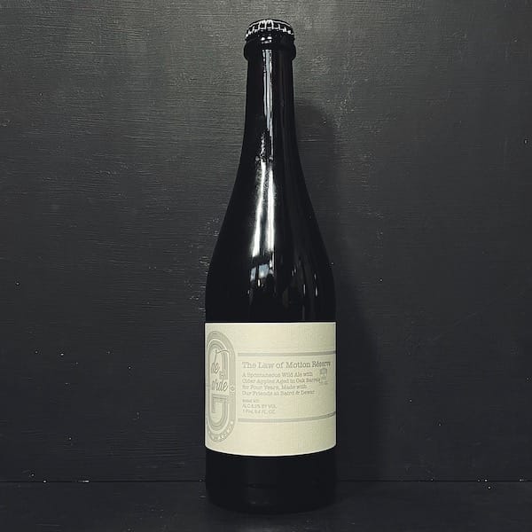 The Law Of Motion Reserve. A Spontaneous Wild Ale with Cider Apples Aged in Oak Barrels for Four Years, Made with Our Friends at Baird & Dewar
